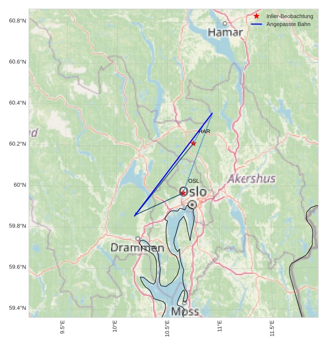 Atmosphärische Bahn des Meteors:
