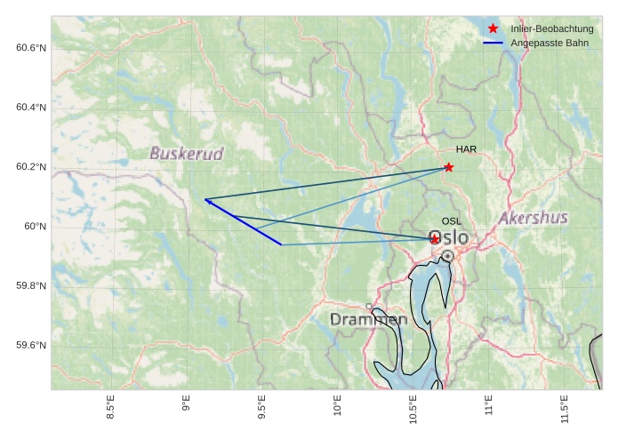 Atmosphärische Bahn des Meteors: