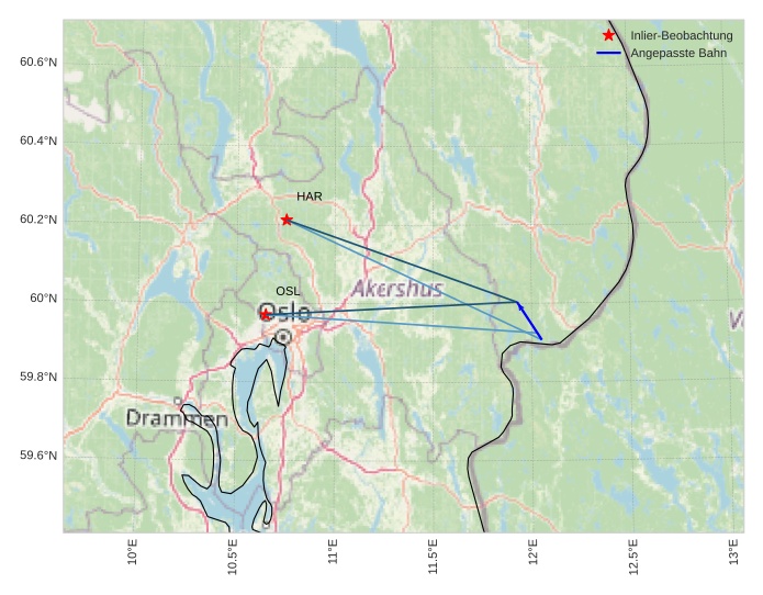 Atmosphärische Bahn des Meteors: