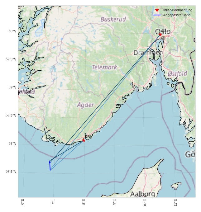 Atmosphärische Bahn des Meteors: