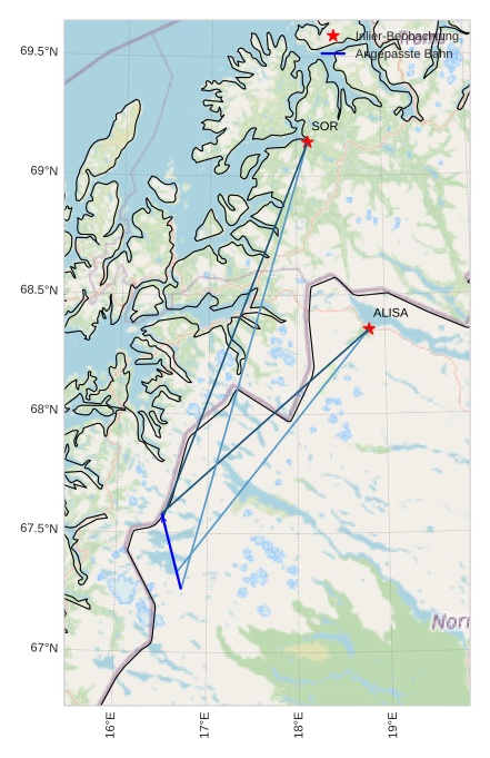 Atmosphärische Bahn des Meteors: