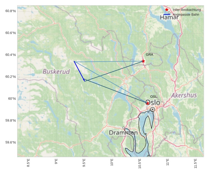 Atmosphärische Bahn des Meteors: