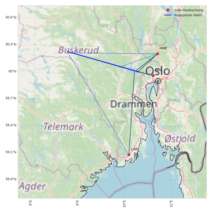 Atmosphärische Bahn des Meteors:
