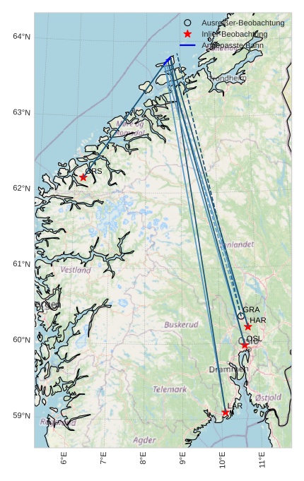 Atmosphärische Bahn des Meteors: