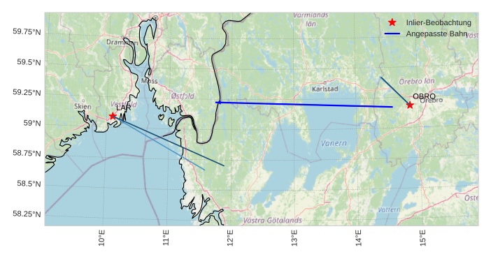 Atmosphärische Bahn des Meteors: