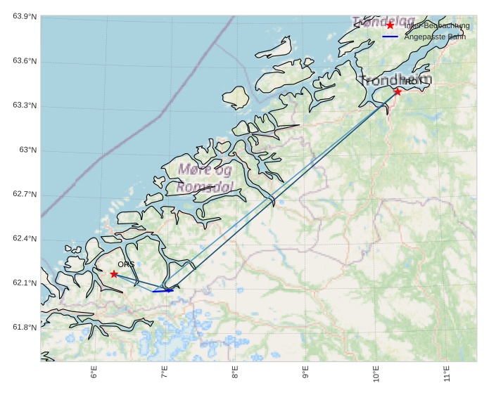 Atmosphärische Bahn des Meteors: