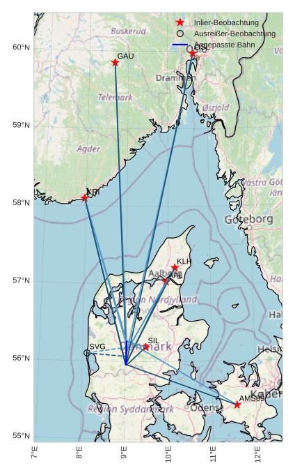 | Atmosphärische Bahn des Meteors: