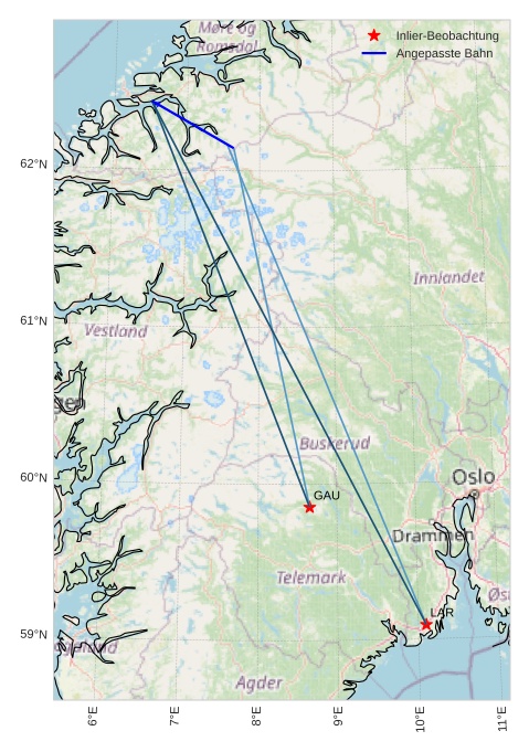 Atmosphärische Bahn des Meteors: