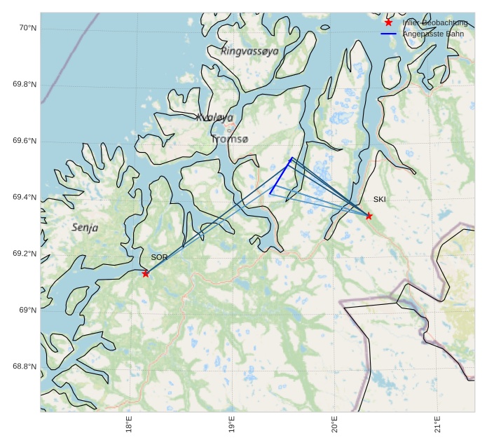 Atmosphärische Bahn des Meteors:
