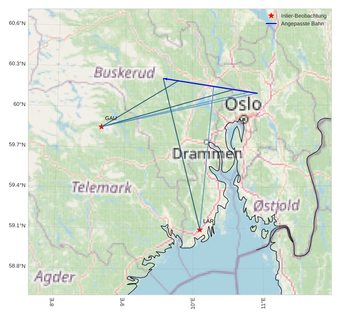 Atmosphärische Bahn des Meteors:
