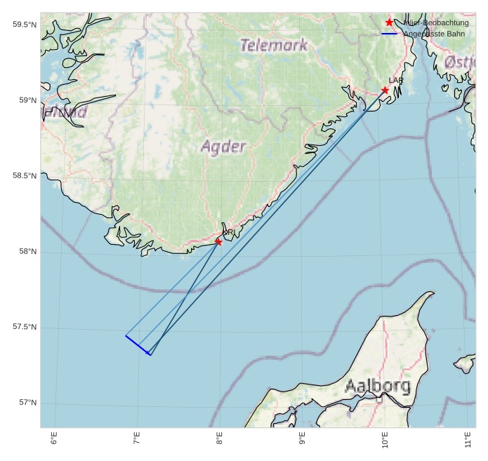 Atmosphärische Bahn des Meteors: