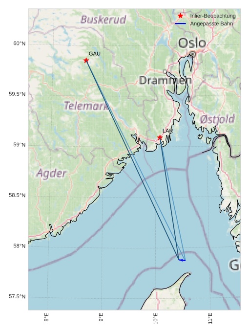 Atmosphärische Bahn des Meteors: