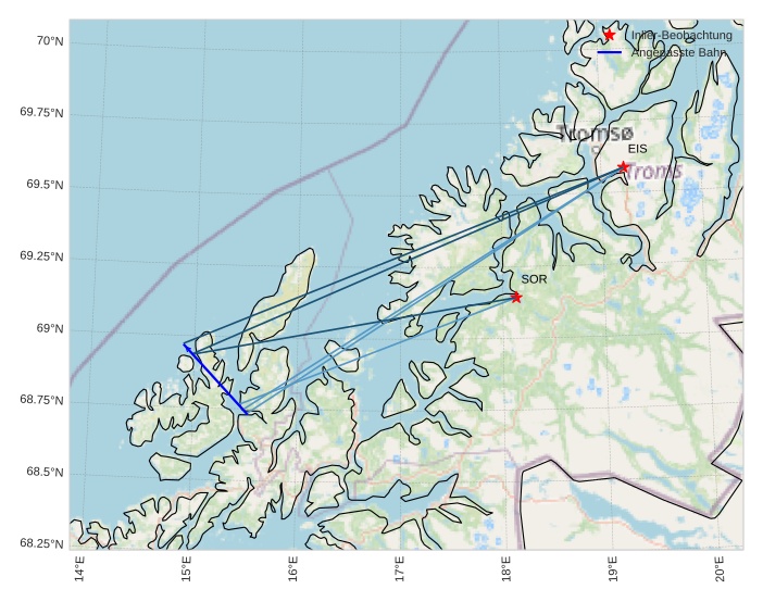 Atmosphärische Bahn des Meteors: