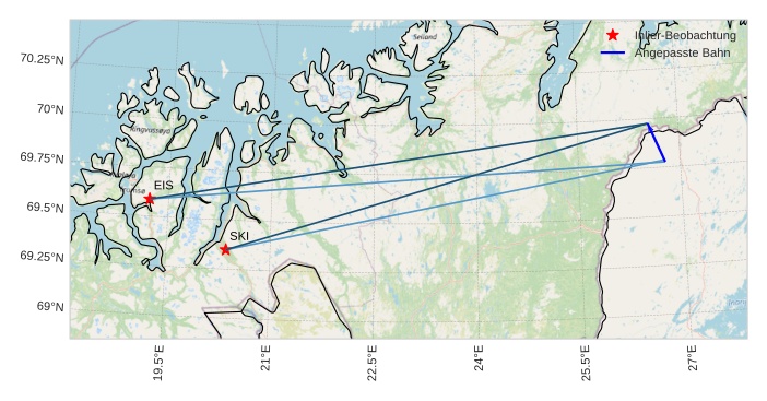 Atmosphärische Bahn des Meteors: