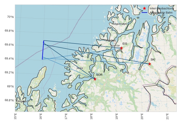 Atmosphärische Bahn des Meteors: