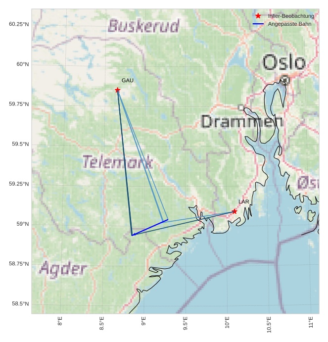 Atmosphärische Bahn des Meteors: