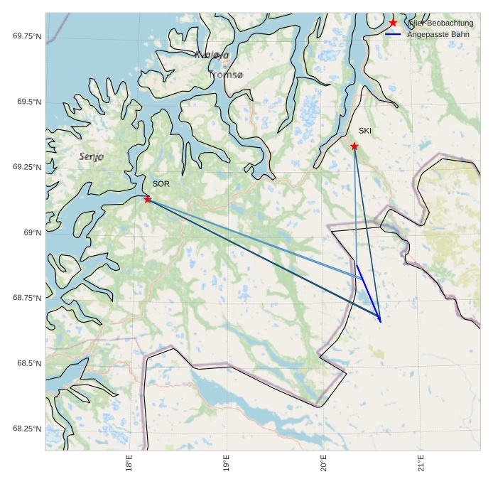 Atmosphärische Bahn des Meteors: