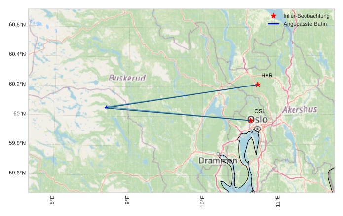 Atmosphärische Bahn des Meteors: