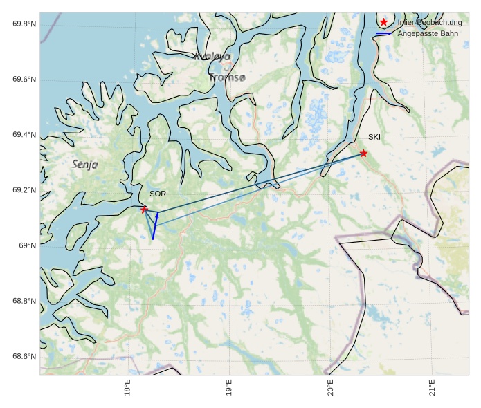 Atmosphärische Bahn des Meteors: