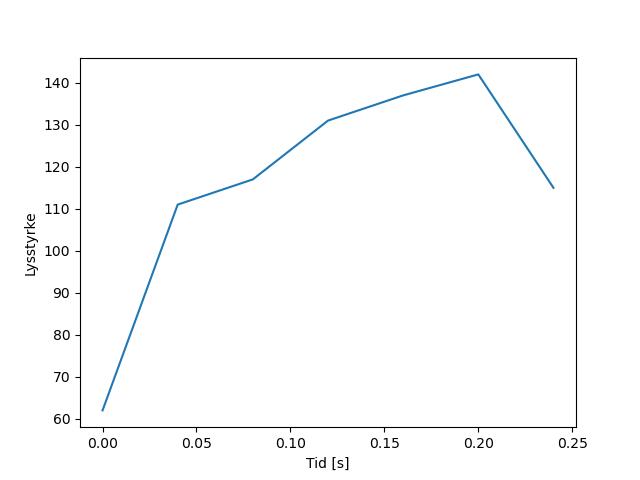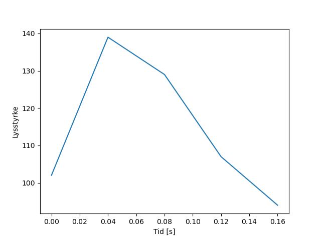 Plottet over viser meteorens høgde over bakken langs dens bane. Hver røde prikk svarer til hvor banen krysser siktelinjene.