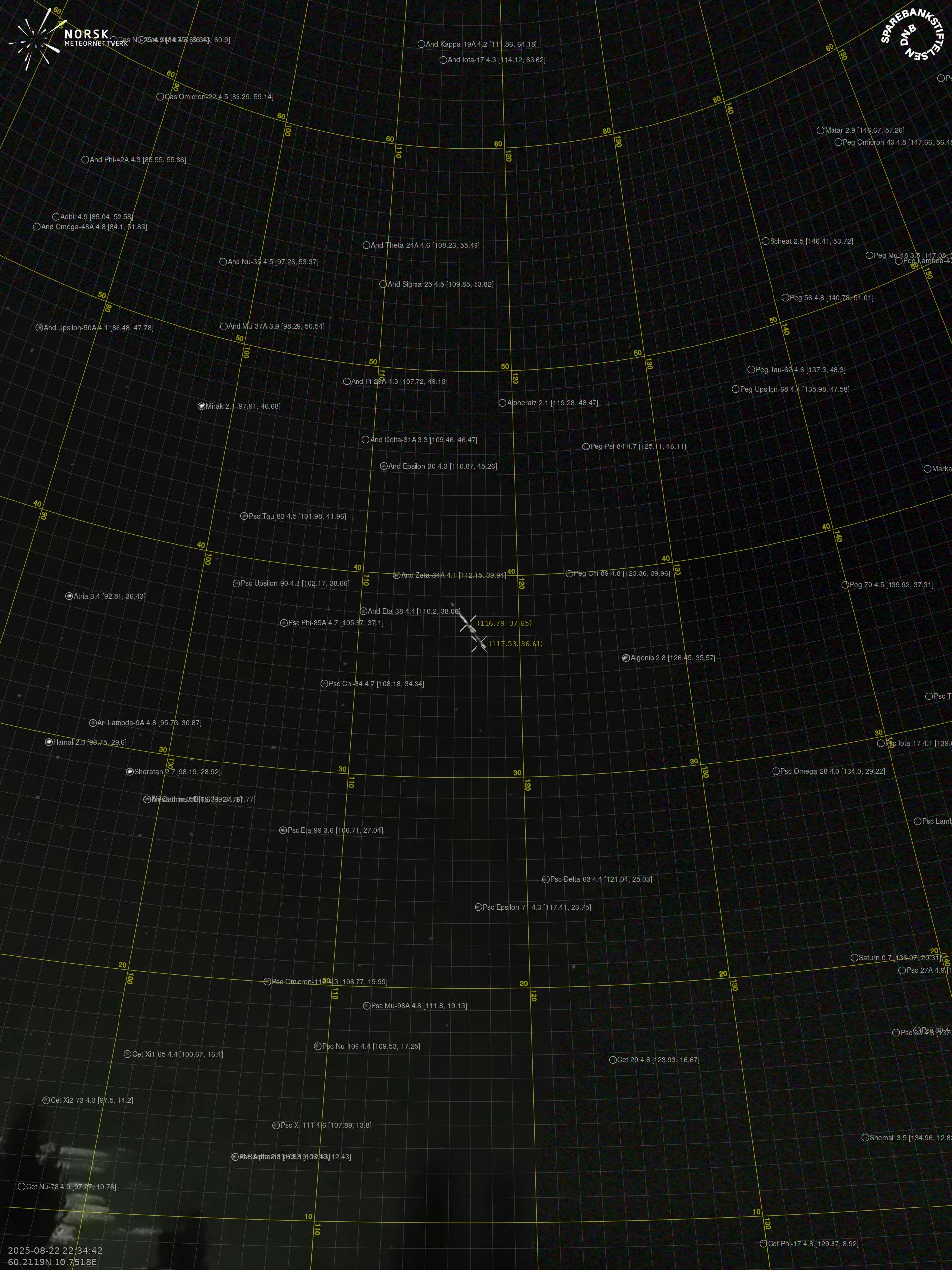 Meteor over Arvika 2025-08-22 22:34:42 UTC