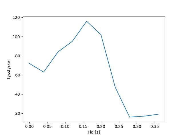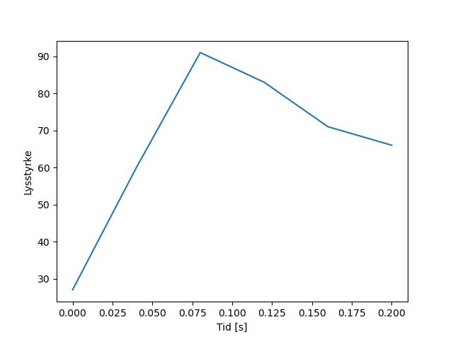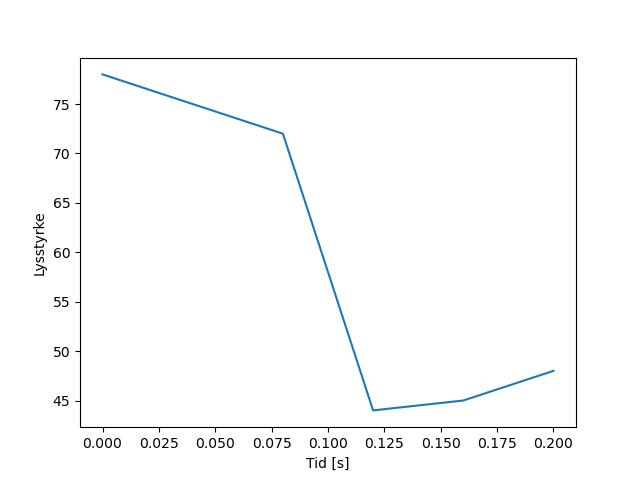 Plottet over viser meteorens høgde over bakken langs dens bane. Hver røde prikk svarer til hvor banen krysser siktelinjene.