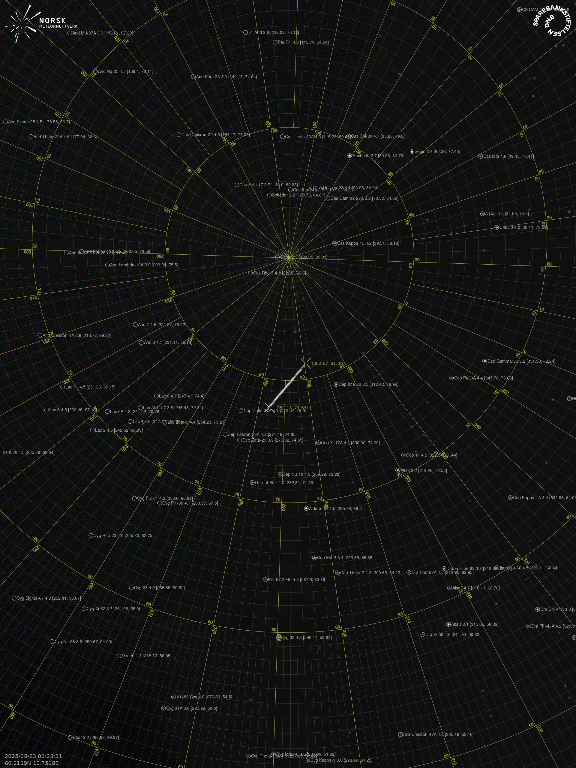 Meteor over Jevnaker 2025-08-23 01:23:31 UTC