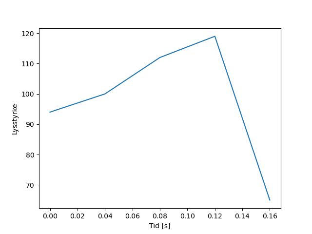 Plottet over viser meteorens høgde over bakken langs dens bane. Hver røde prikk svarer til hvor banen krysser siktelinjene.