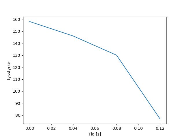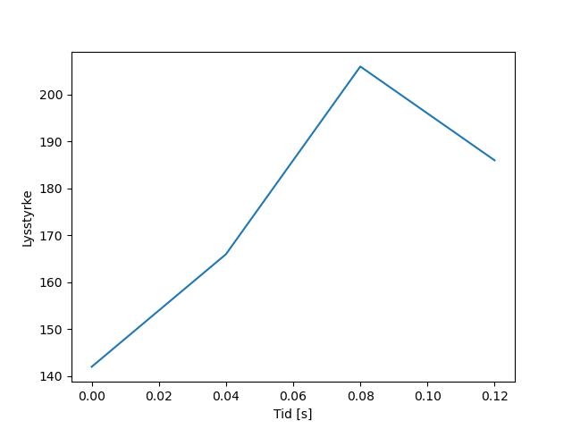 Plottet over viser meteorens høgde over bakken langs dens bane. Hver røde prikk svarer til hvor banen krysser siktelinjene.