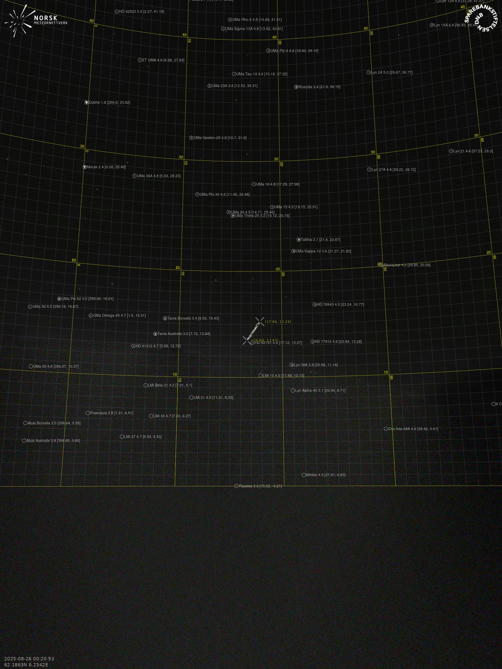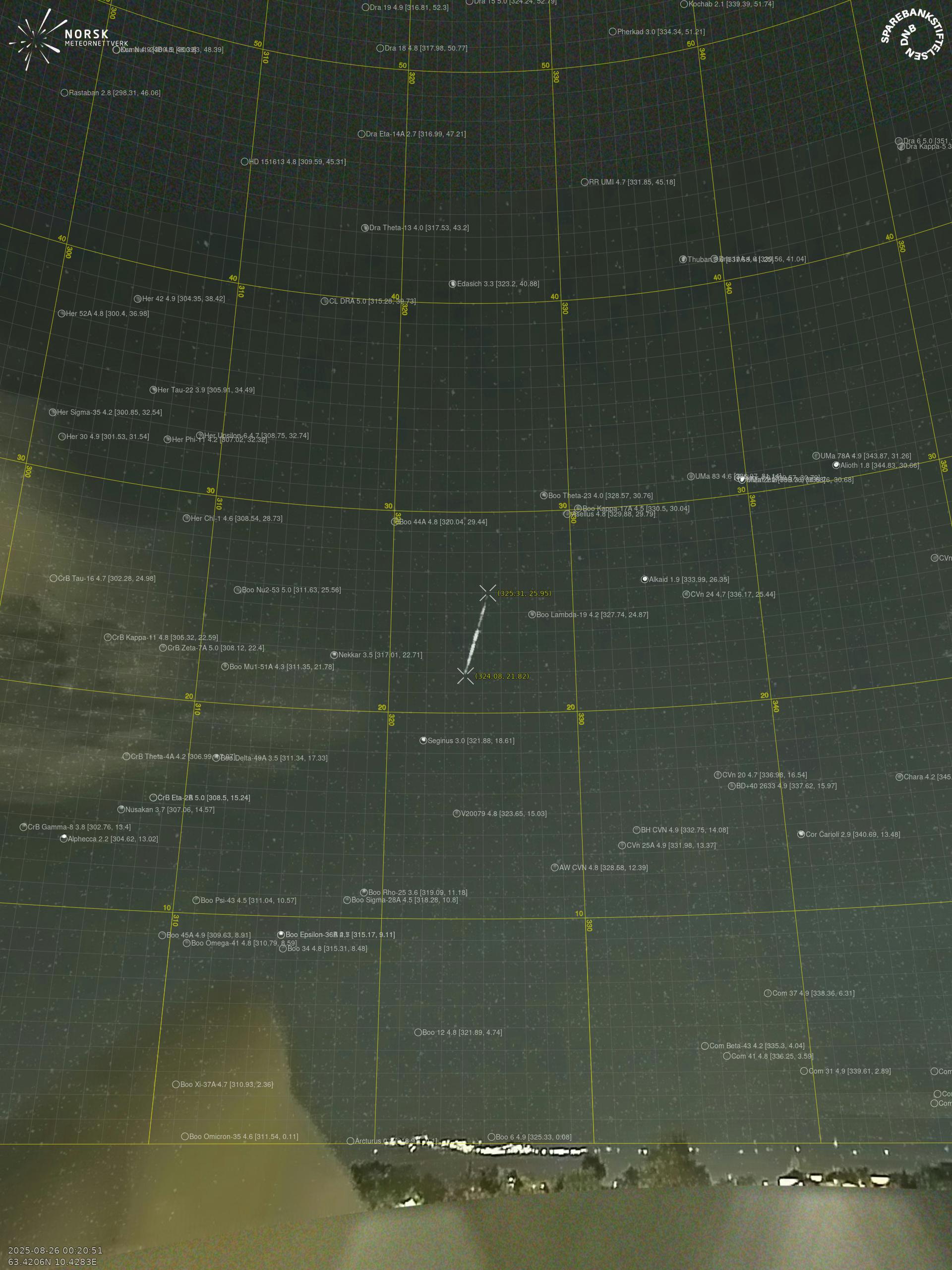 Meteor over Sistranda 2025-08-26 00:20:51 UTC