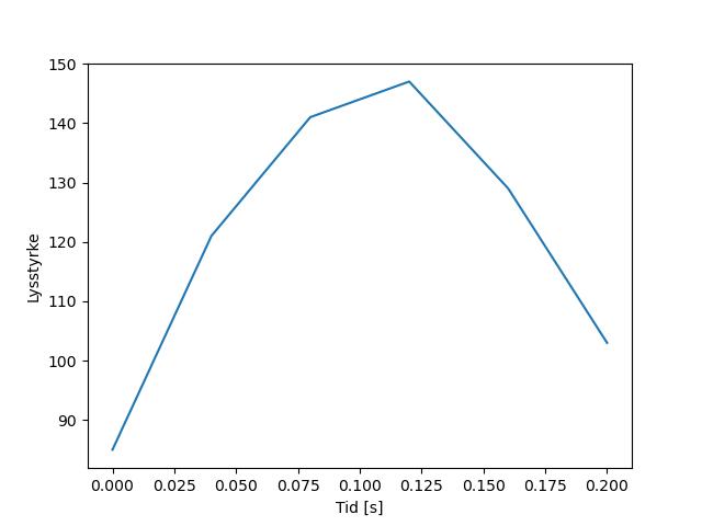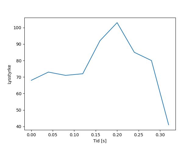Plottet over viser meteorens høgde over bakken langs dens bane. Hver røde prikk svarer til hvor banen krysser siktelinjene.