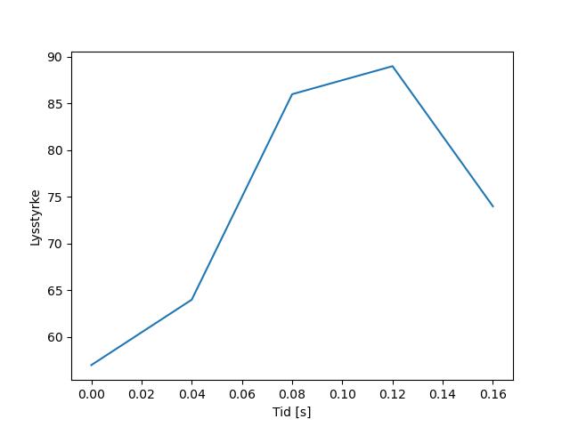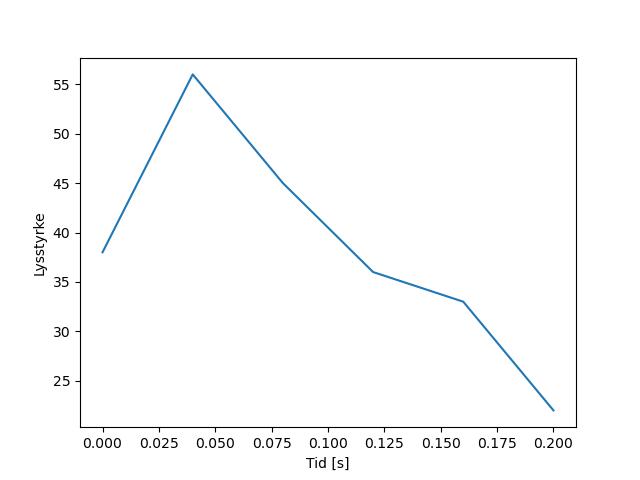Plottet over viser meteorens høgde over bakken langs dens bane. Hver røde prikk svarer til hvor banen krysser siktelinjene.