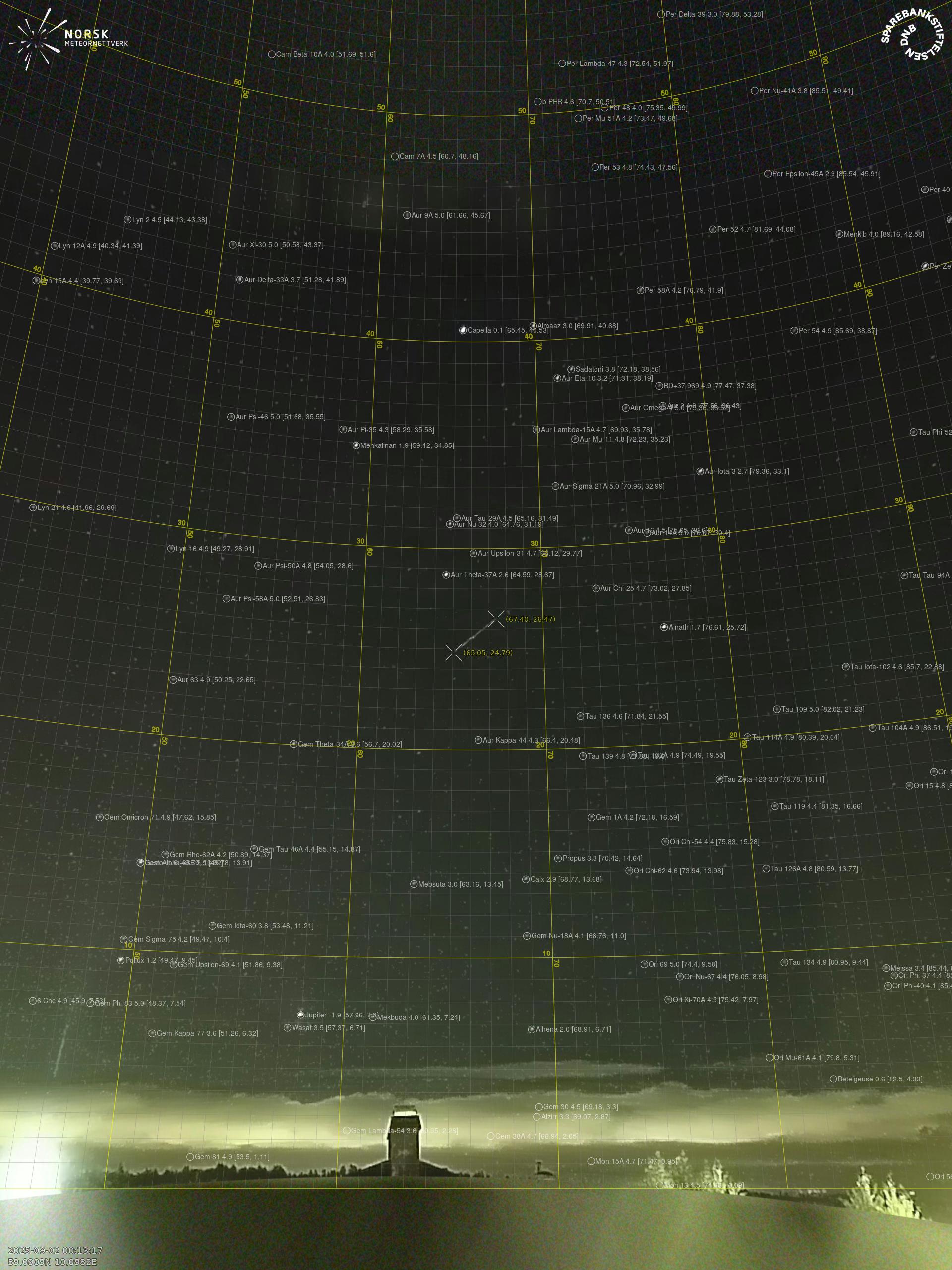 Meteor over Kviteseid 2025-09-02 00:13:12 UTC