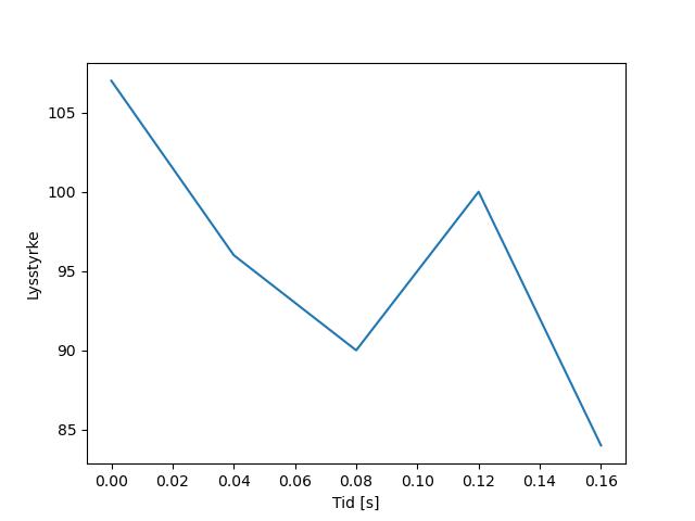 Plottet over viser meteorens høgde over bakken langs dens bane. Hver røde prikk svarer til hvor banen krysser siktelinjene.