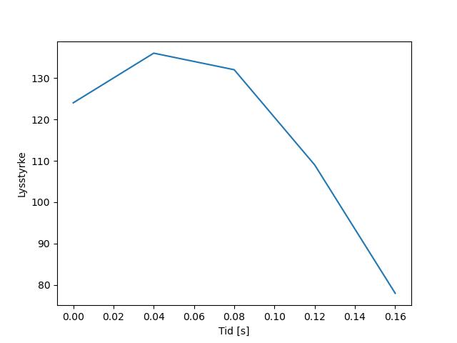 Plottet over viser meteorens høgde over bakken langs dens bane. Hver røde prikk svarer til hvor banen krysser siktelinjene.