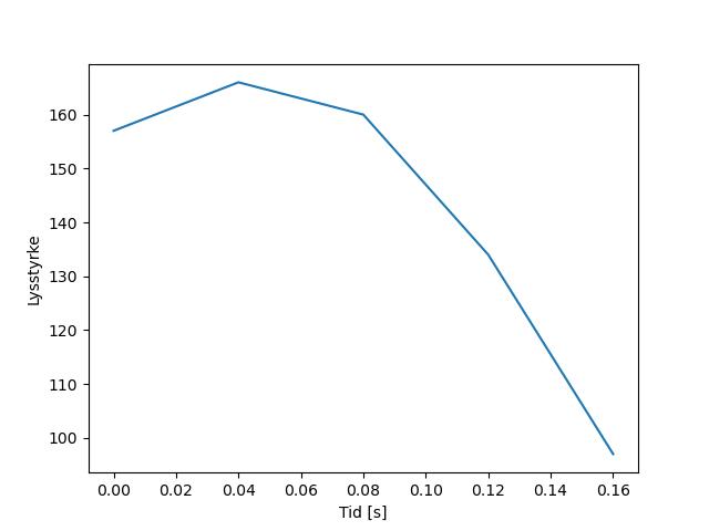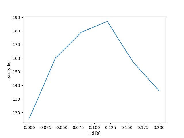 Plottet over viser meteorens høgde over bakken langs dens bane. Hver røde prikk svarer til hvor banen krysser siktelinjene.
