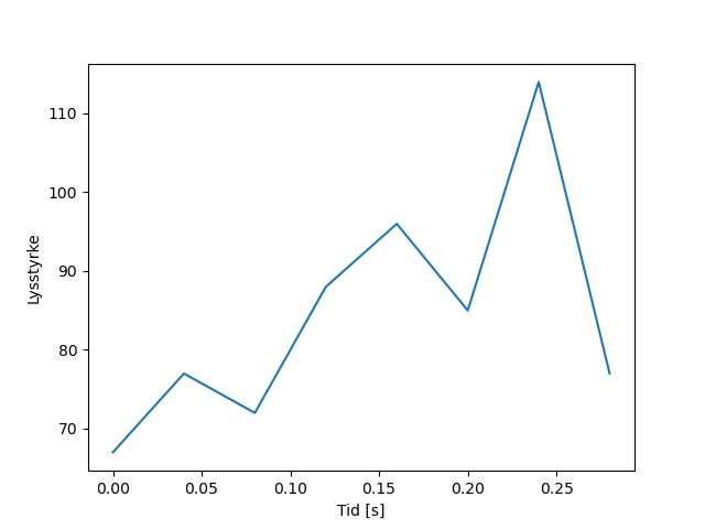 Plottet over viser meteorens høgde over bakken langs dens bane. Hver røde prikk svarer til hvor banen krysser siktelinjene.
