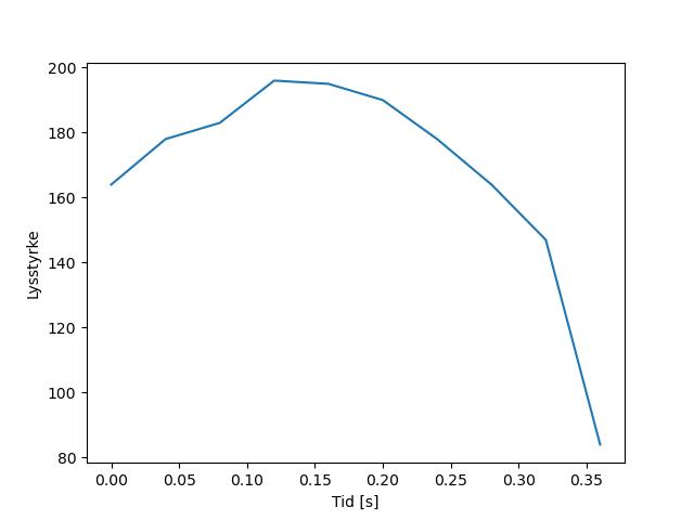 Plottet over viser meteorens høgde over bakken langs dens bane. Hver røde prikk svarer til hvor banen krysser siktelinjene.