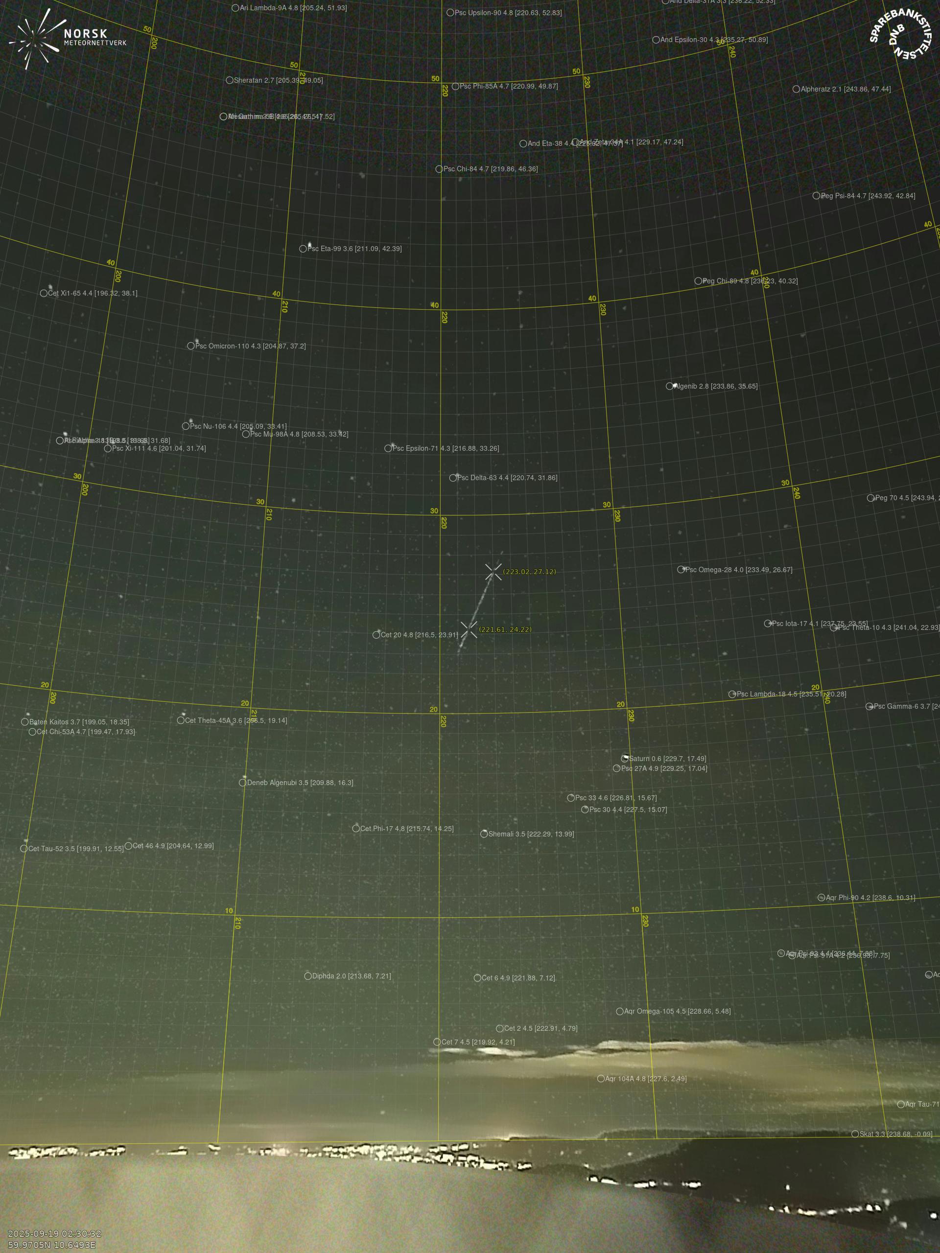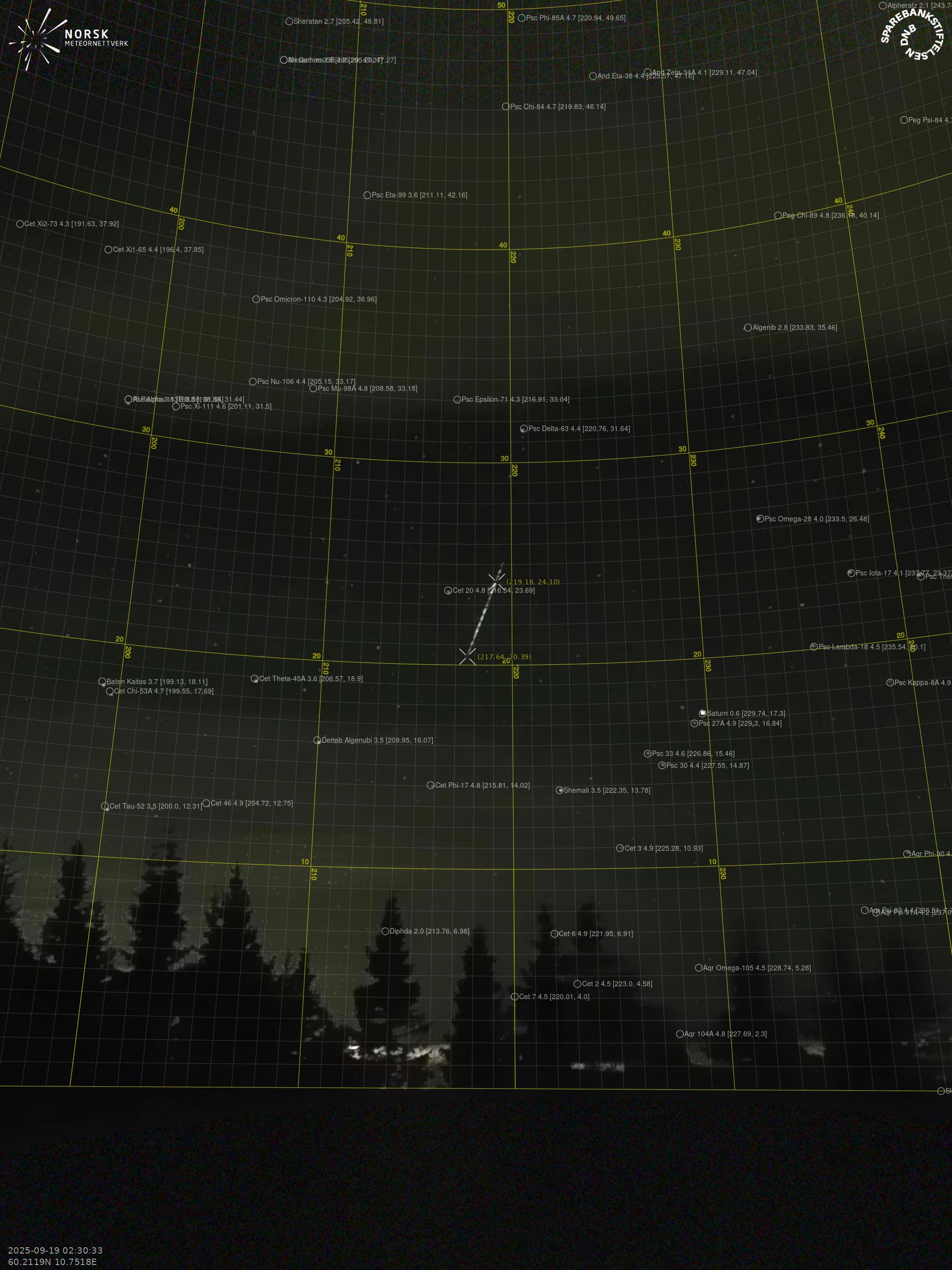 Meteor over Åmli 2025-09-19 02:30:32 UTC