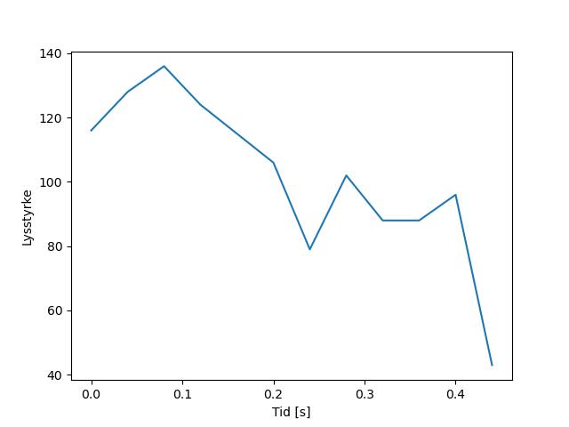 Plottet over viser meteorens høgde over bakken langs dens bane. Hver røde prikk svarer til hvor banen krysser siktelinjene.