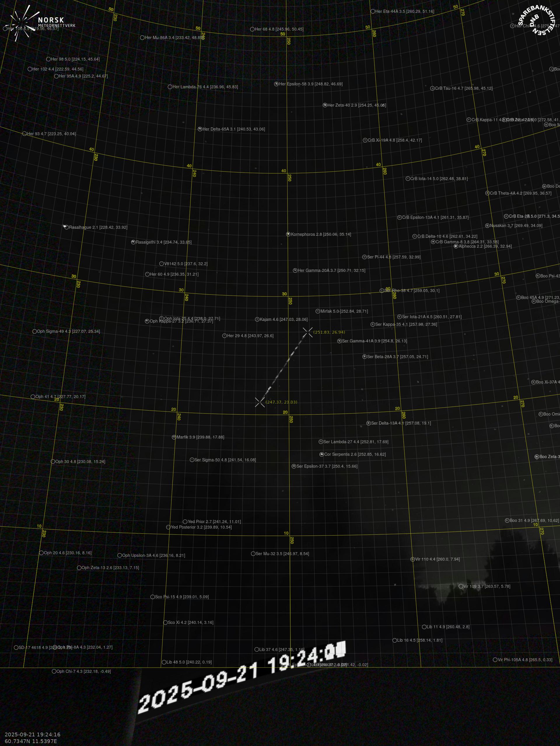 Meteor over Åmot 2025-09-21 19:24:16 UTC