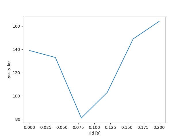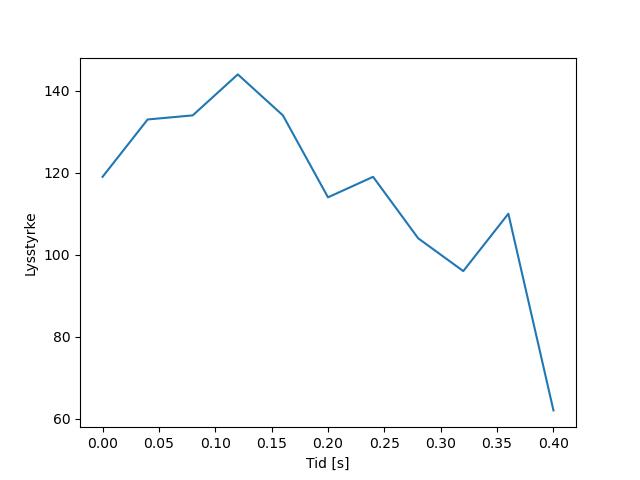 Plottet over viser meteorens høgde over bakken langs dens bane. Hver røde prikk svarer til hvor banen krysser siktelinjene.
