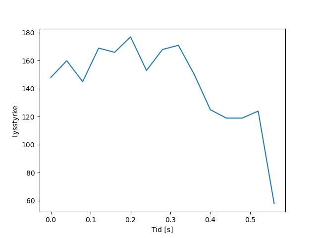 Plottet over viser meteorens høgde over bakken langs dens bane. Hver røde prikk svarer til hvor banen krysser siktelinjene.