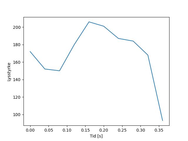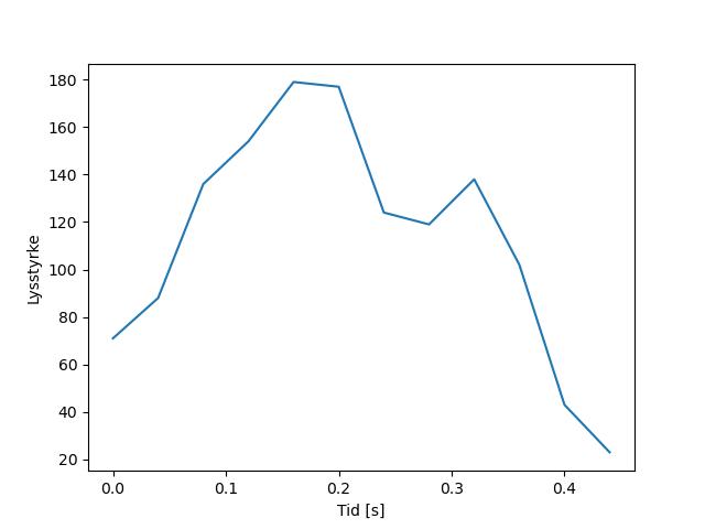 Plottet over viser meteorens høgde over bakken langs dens bane. Hver røde prikk svarer til hvor banen krysser siktelinjene.