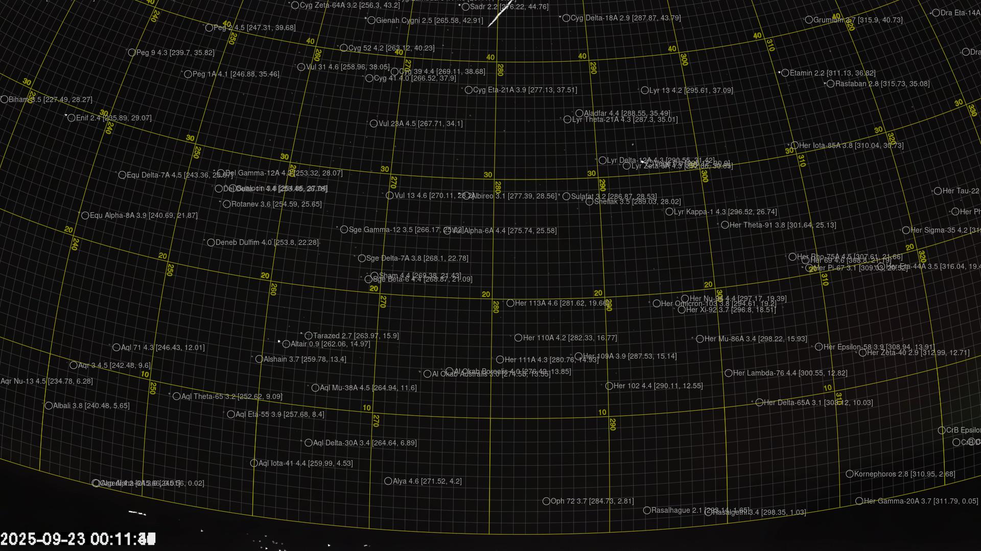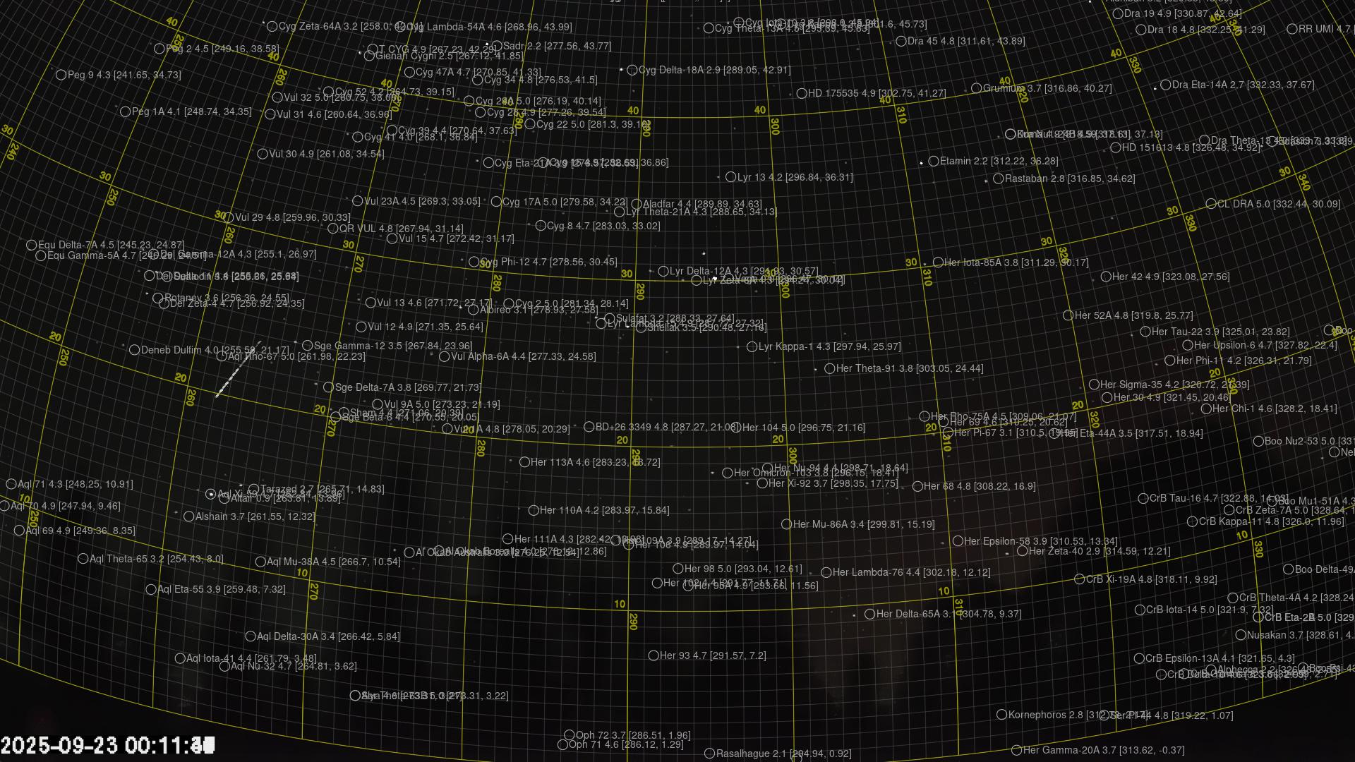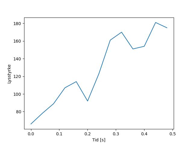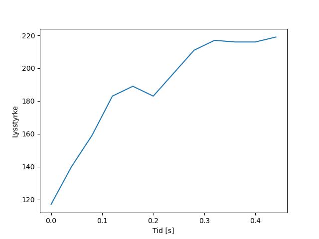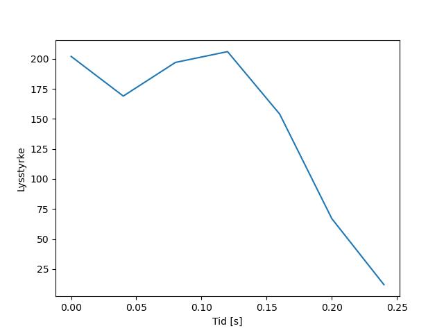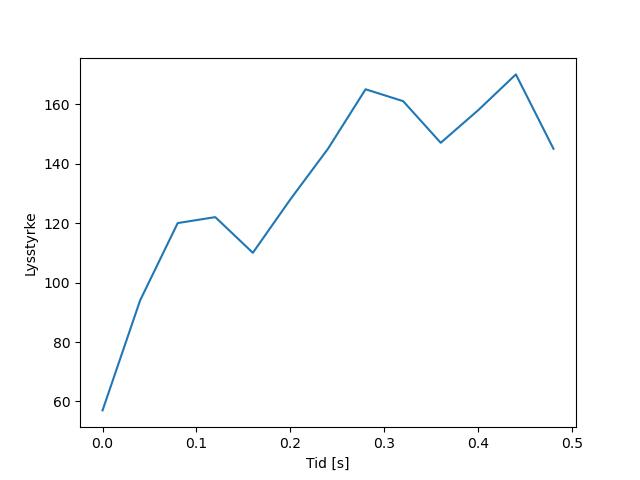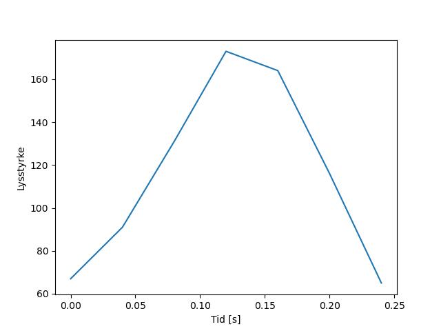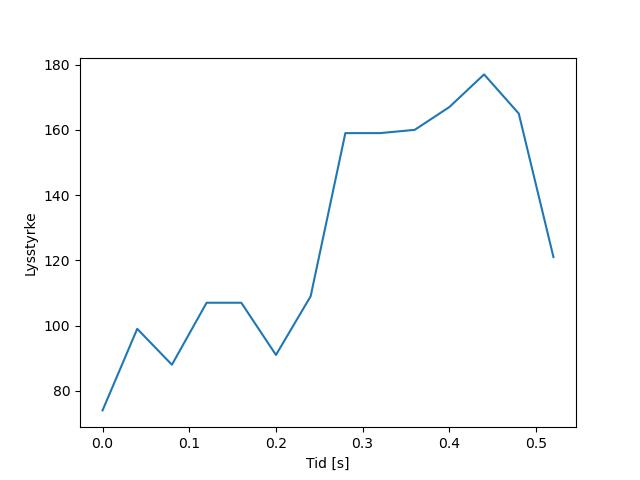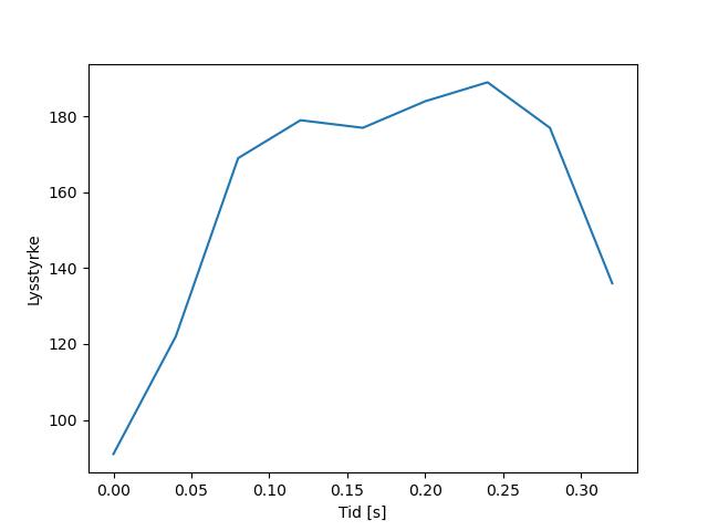 Plottet over viser meteorens høgde over bakken langs dens bane. Hver røde prikk svarer til hvor banen krysser siktelinjene.