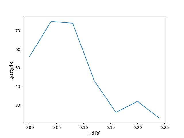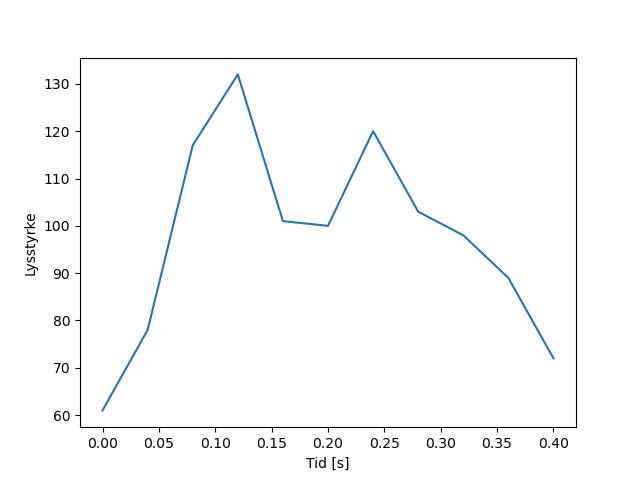 Plottet over viser meteorens høgde over bakken langs dens bane. Hver røde prikk svarer til hvor banen krysser siktelinjene.