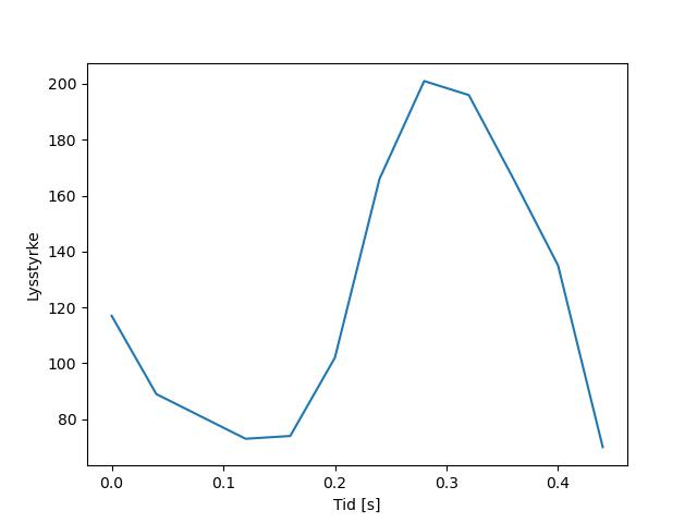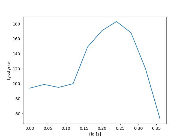 Plottet over viser meteorens høgde over bakken langs dens bane. Hver røde prikk svarer til hvor banen krysser siktelinjene.