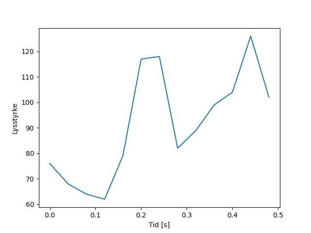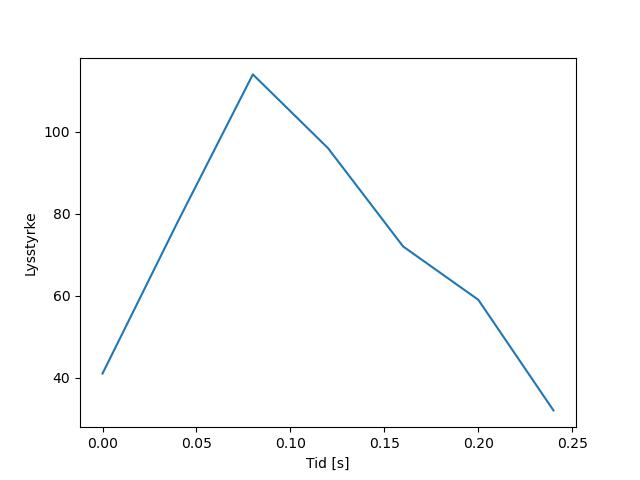 Plottet over viser meteorens høgde over bakken langs dens bane. Hver røde prikk svarer til hvor banen krysser siktelinjene.