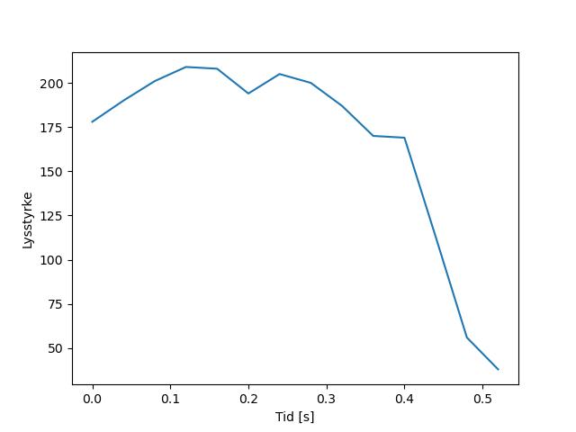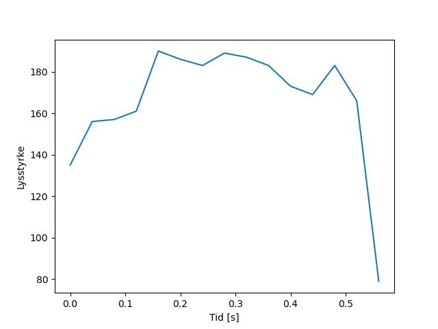 Plottet over viser meteorens høgde over bakken langs dens bane. Hver røde prikk svarer til hvor banen krysser siktelinjene.
