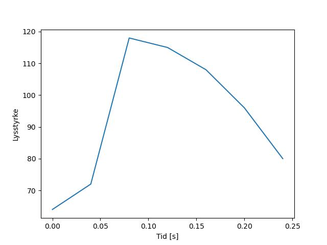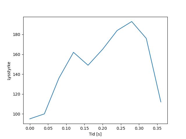 Plottet over viser meteorens høgde over bakken langs dens bane. Hver røde prikk svarer til hvor banen krysser siktelinjene.